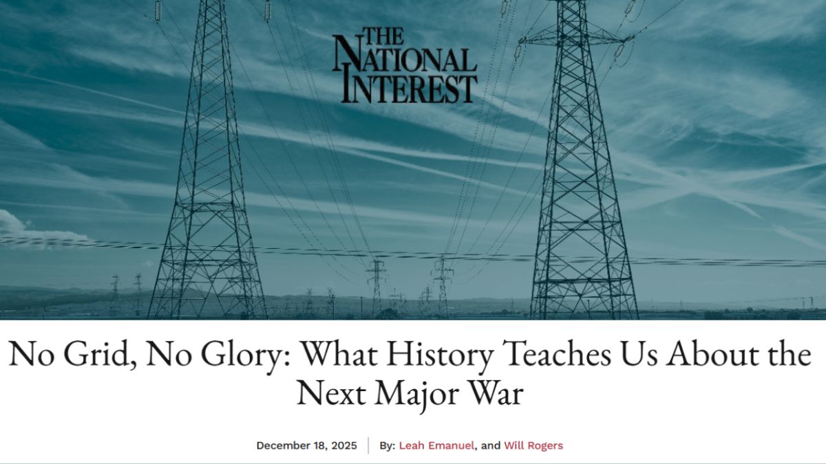 Leah Emanuel and Will Rogers explain in The National Interest how lessons from the past can act as a catalyst for coordination today across the federal government, the electric industry, and the military to ensure the strength of our electric grid deters conflict and maintains our military superiority.